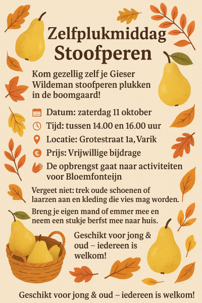 11 oktober - Onze bewoners helpen graag mee om de peren te plukken.