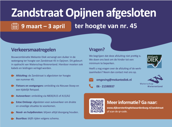 9 maart - Wegomleiding bij Opijnen
